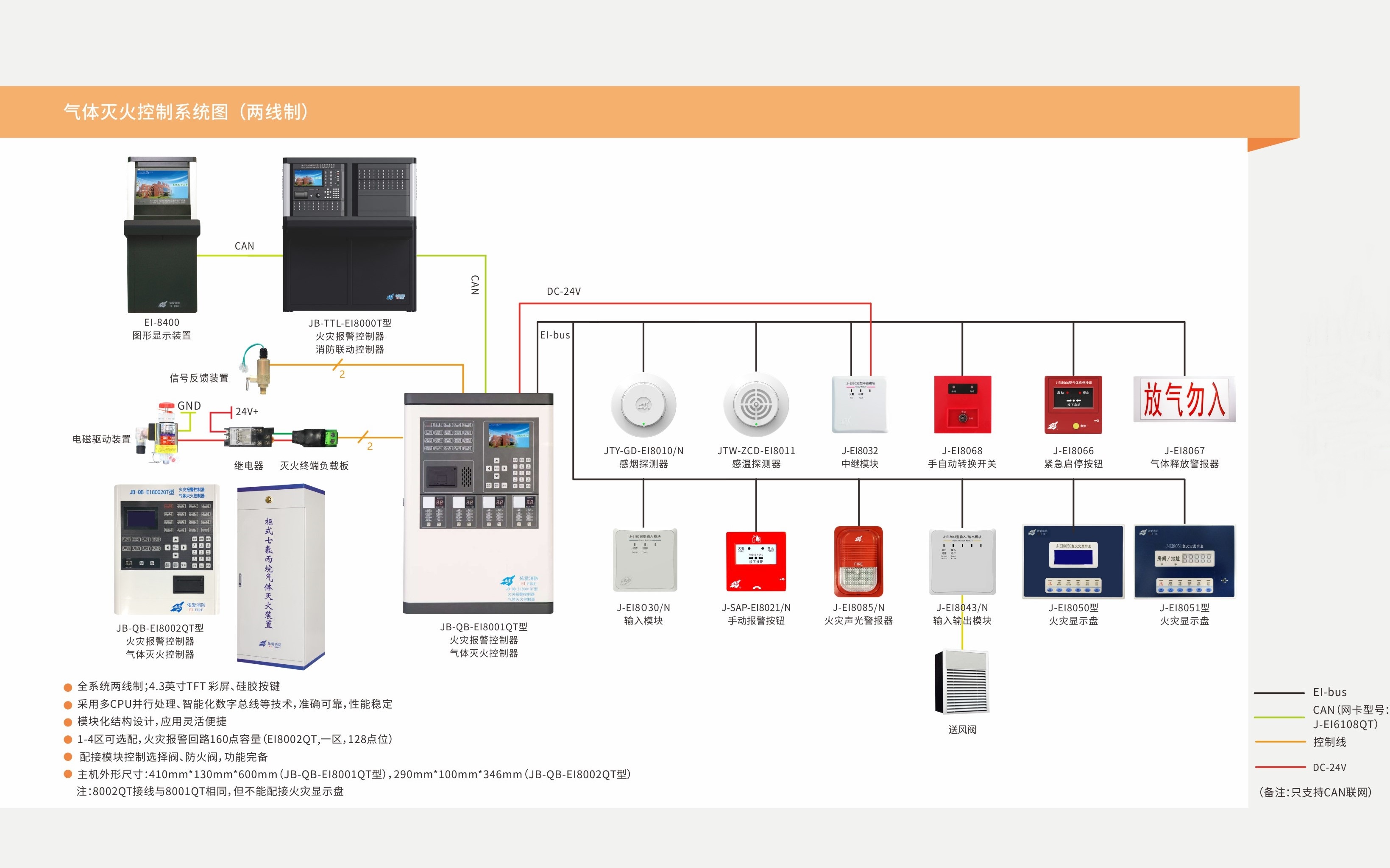 滅火控制區(qū)1/2/3/4區(qū)靈活配置;報警回路容量160點